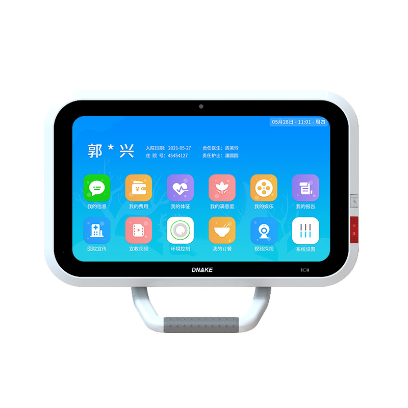 安裝在病床旁的支架或者搖臂上,用于顯示患者各項(xiàng)信息和報(bào)告,便于醫(yī)生和患者查看,具備各項(xiàng)娛樂(lè)功能,也可做娛樂(lè)設(shè)備試用,減輕患者住院焦慮。